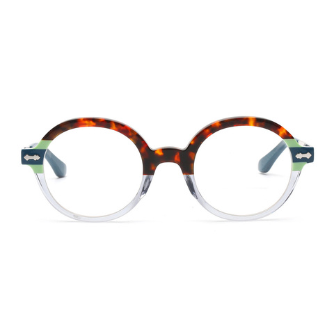 Handmade kim loại và Acetate kính quang học Khung hình tròn trong màu xanh màu nâu phong cách kim cương khuôn mặt phong cách trang trí
